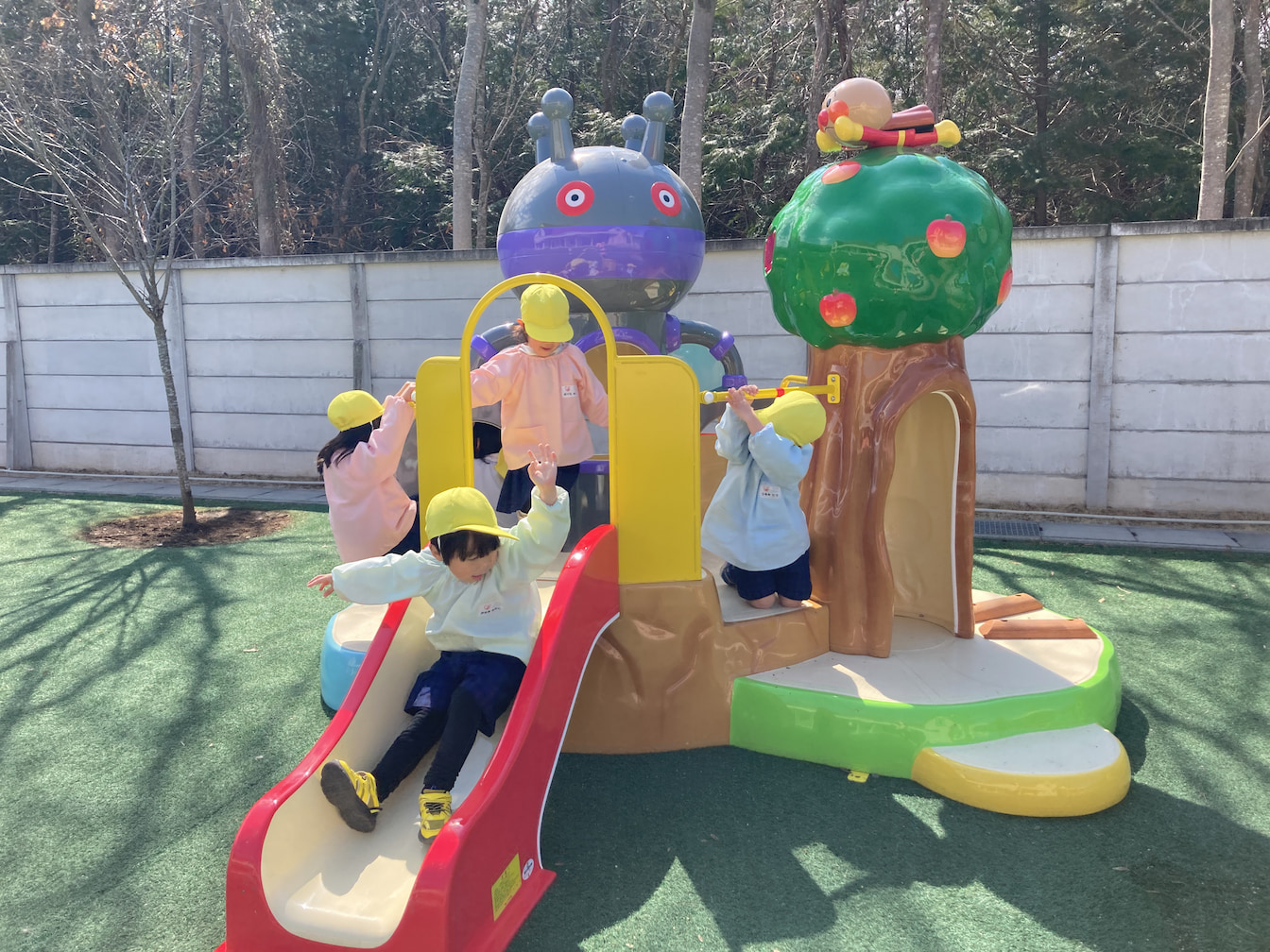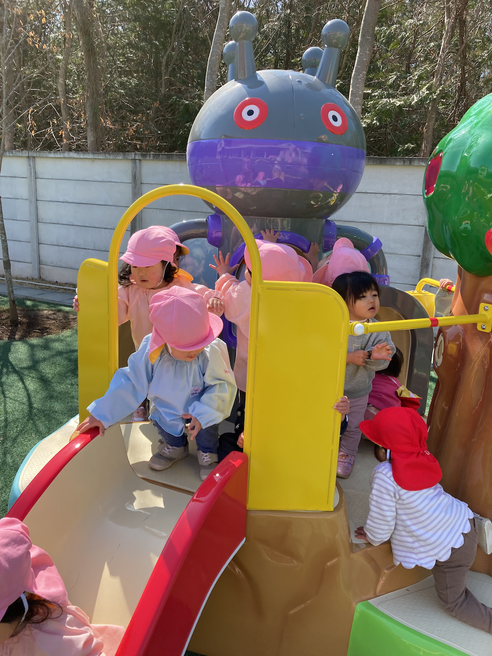 新しい遊具が入りました。 2026年3月6日(金) 新しい遊具が入りました。 こども園に子どもたちが大好きなアンパンマンの遊具が新しく加わりました。 設置をしている時から「だだんだんだ!」と心を弾ませ、保育室内から眺めていました。 早速遊具に駆けより、階段を登ったり滑り台を滑りながら夢中になって遊びました。 とても満足した表情が見られました。