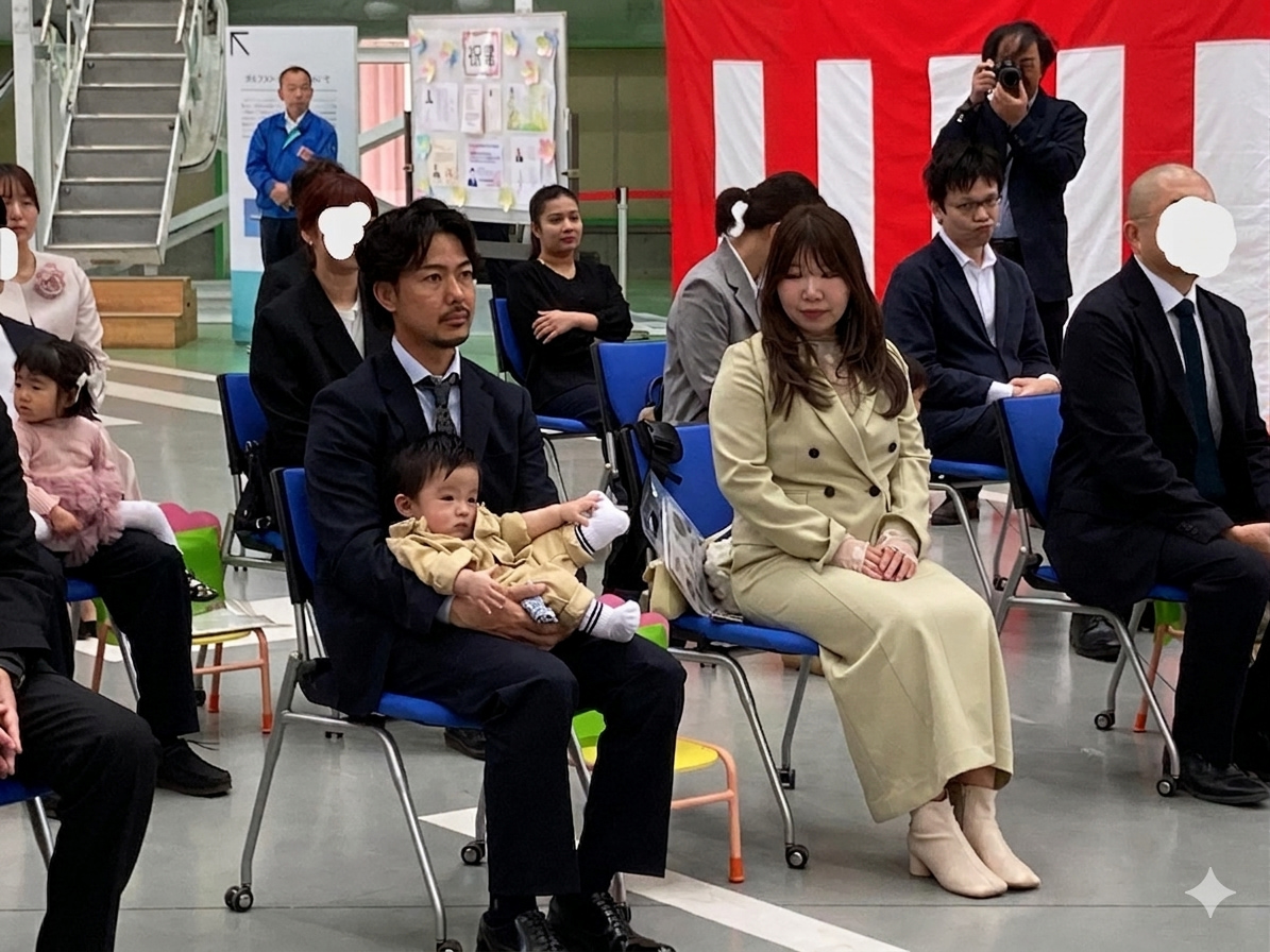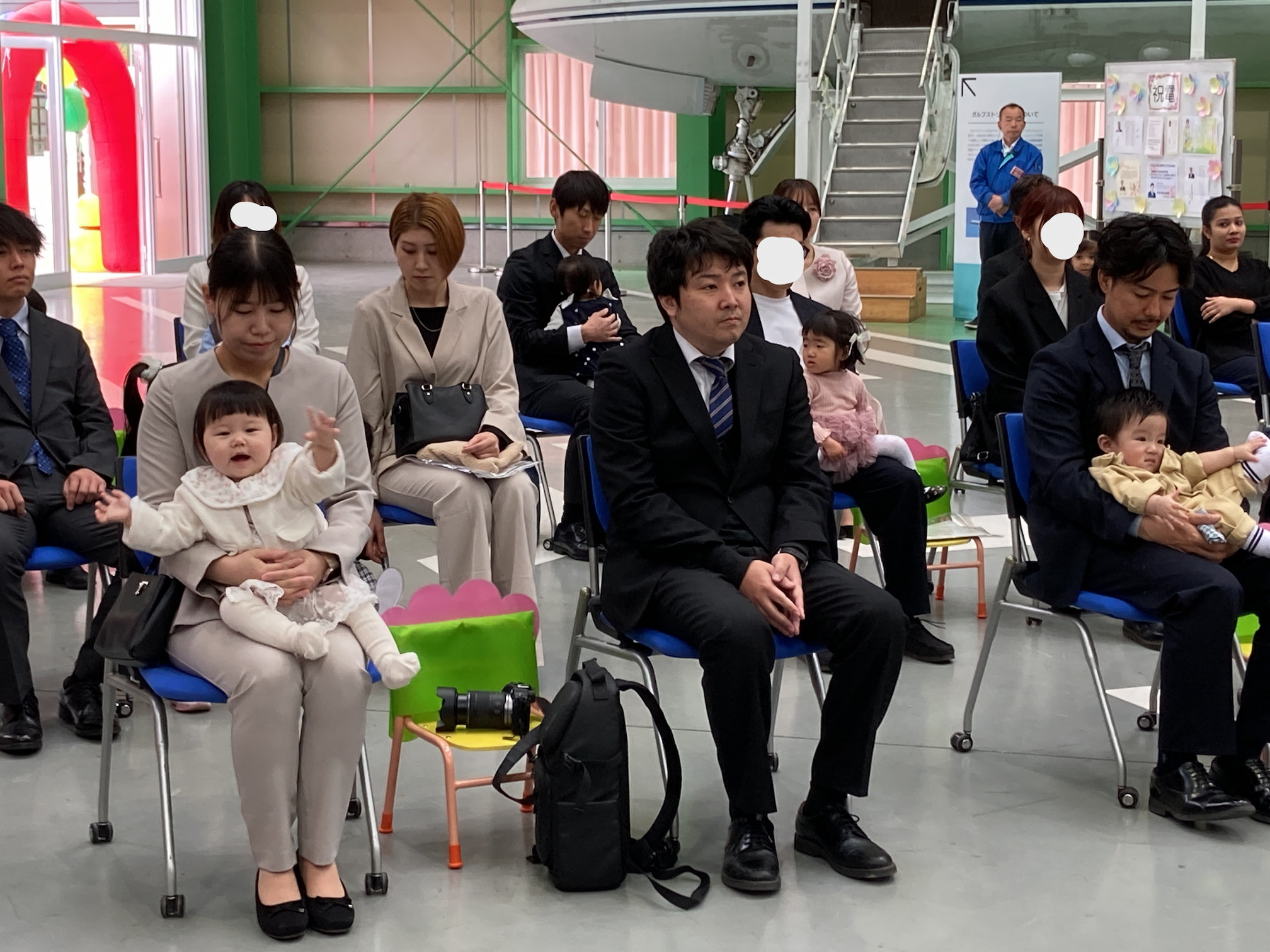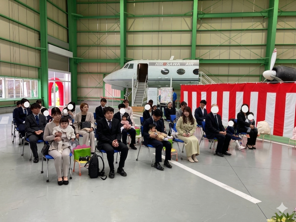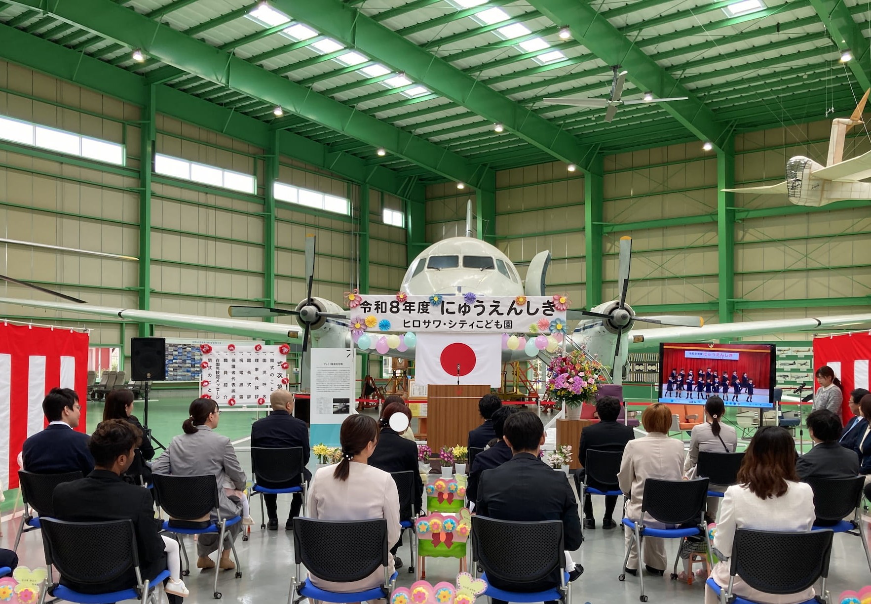 入園式を行いました 2026年4月4日(土) 入園式を行いました。 満開の桜のもと、無事に入園式を執り行うことができました。初めての場所で緊張気味の子どもたちでしたが、ユメノバの大きな飛行機やぬいぐるみを見ると、安心して少しずつ笑顔もみられました。これからお友だちや先生と楽しい毎日を過ごしましょうね。