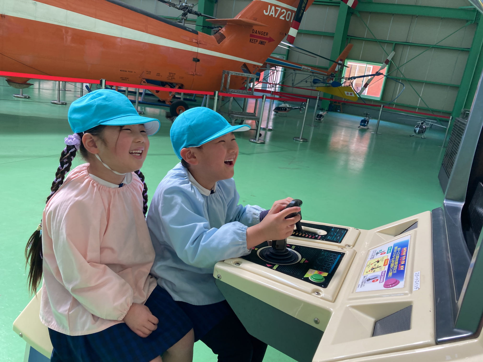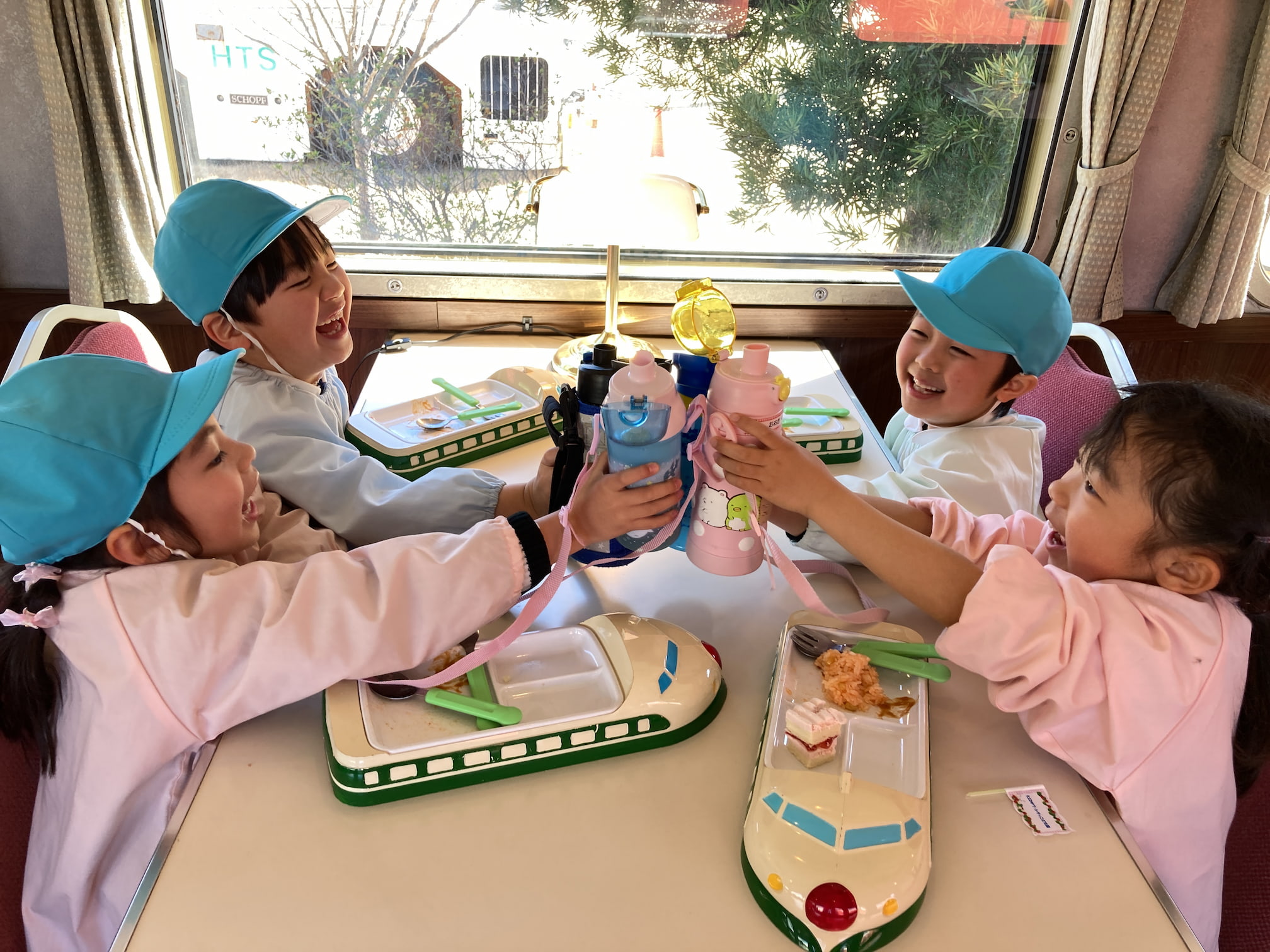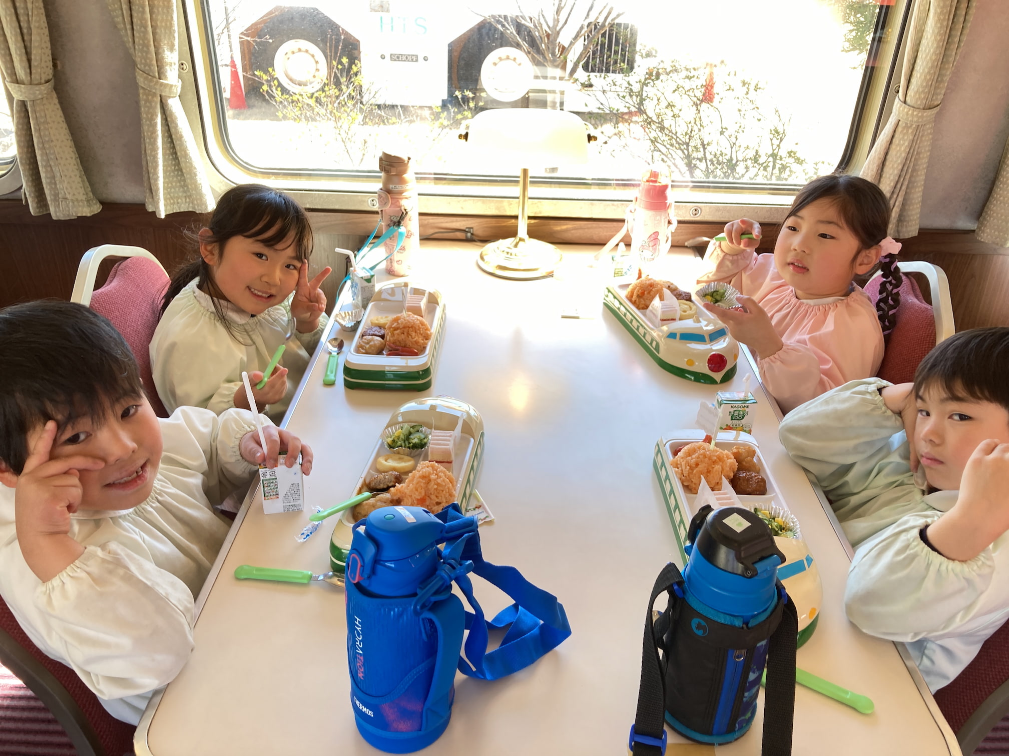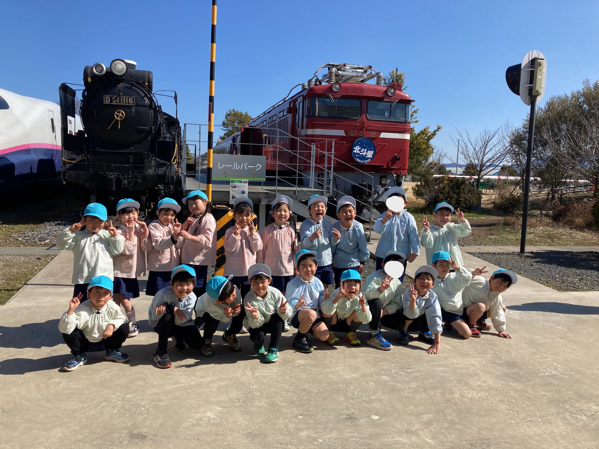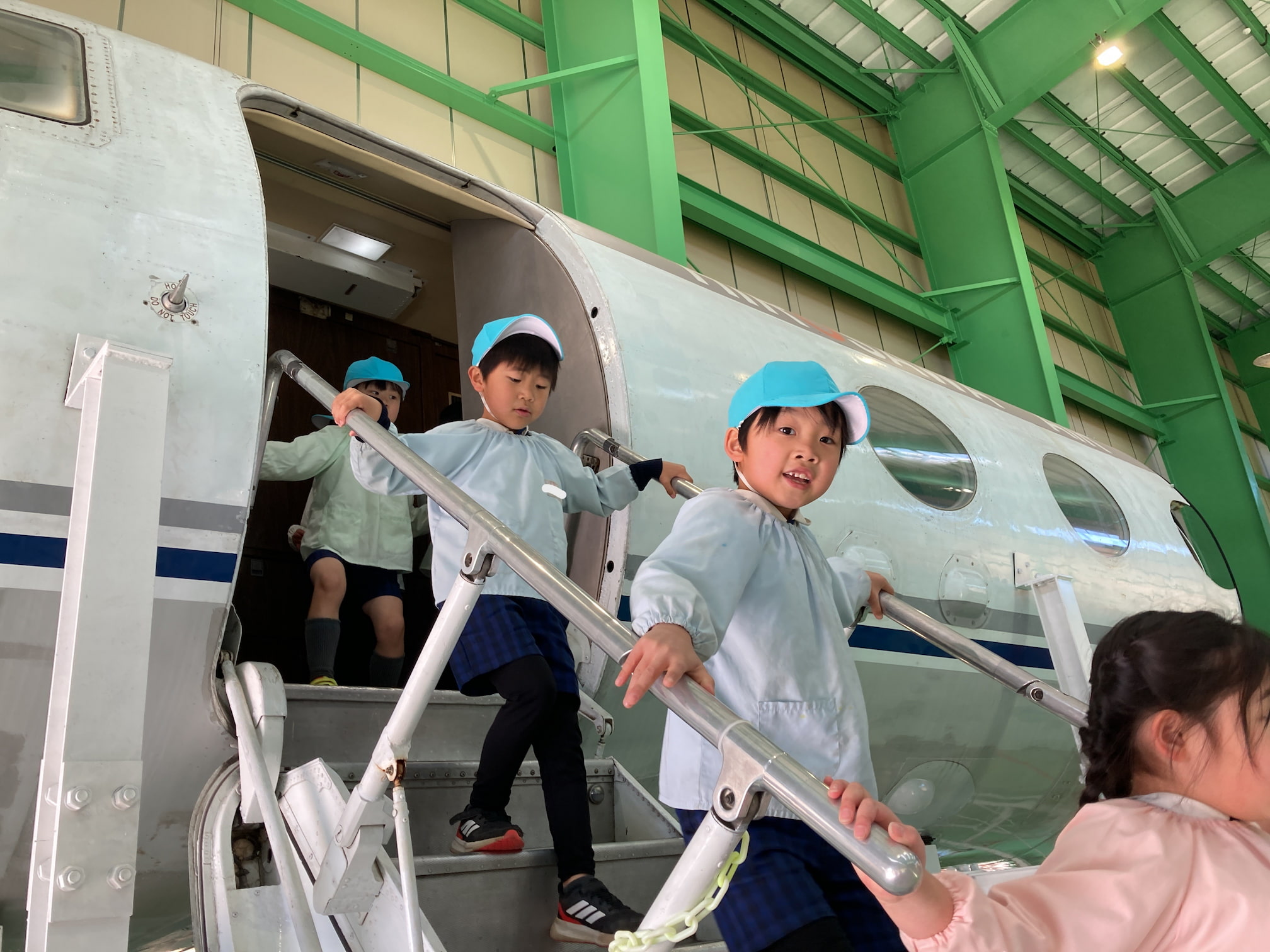 お別れ遠足に行きました 2026年3月12日(木) お別れ遠足に行きました。 あおぐみがユメノバにお別れ遠足に出かけました。 飛行機や消防自動車を見学したり、実際に乗ったりして大興奮の子どもたち。 初めて行った宇宙館では、船内実験室や船外実験プラットフォームに入り、「広いね!」「声が響く!」などの会話も聞こえてきて、とても楽しい様子でした。 昼食は、北斗星で新幹線プレートのお子さまランチとケーキをお腹いっぱい食べて大満足でした。 思い出に残る1日になりました。