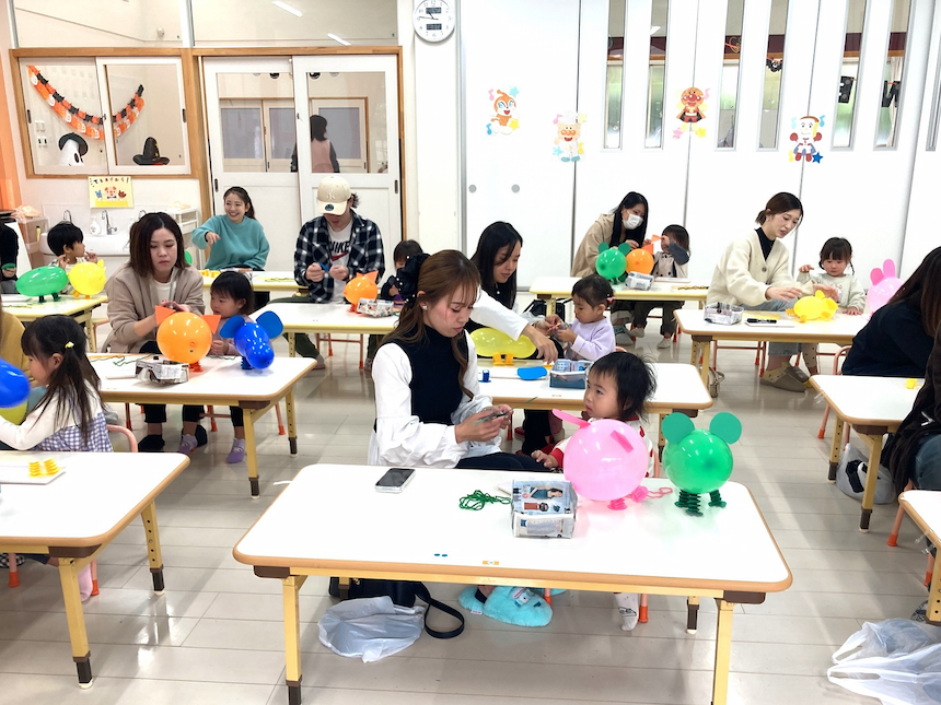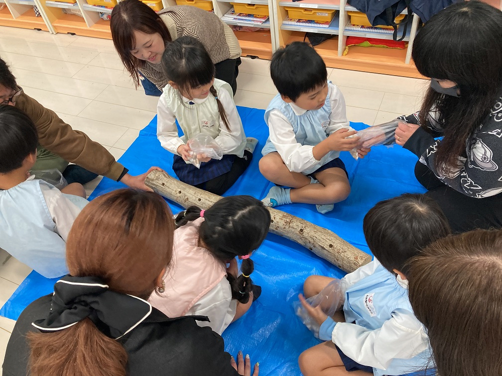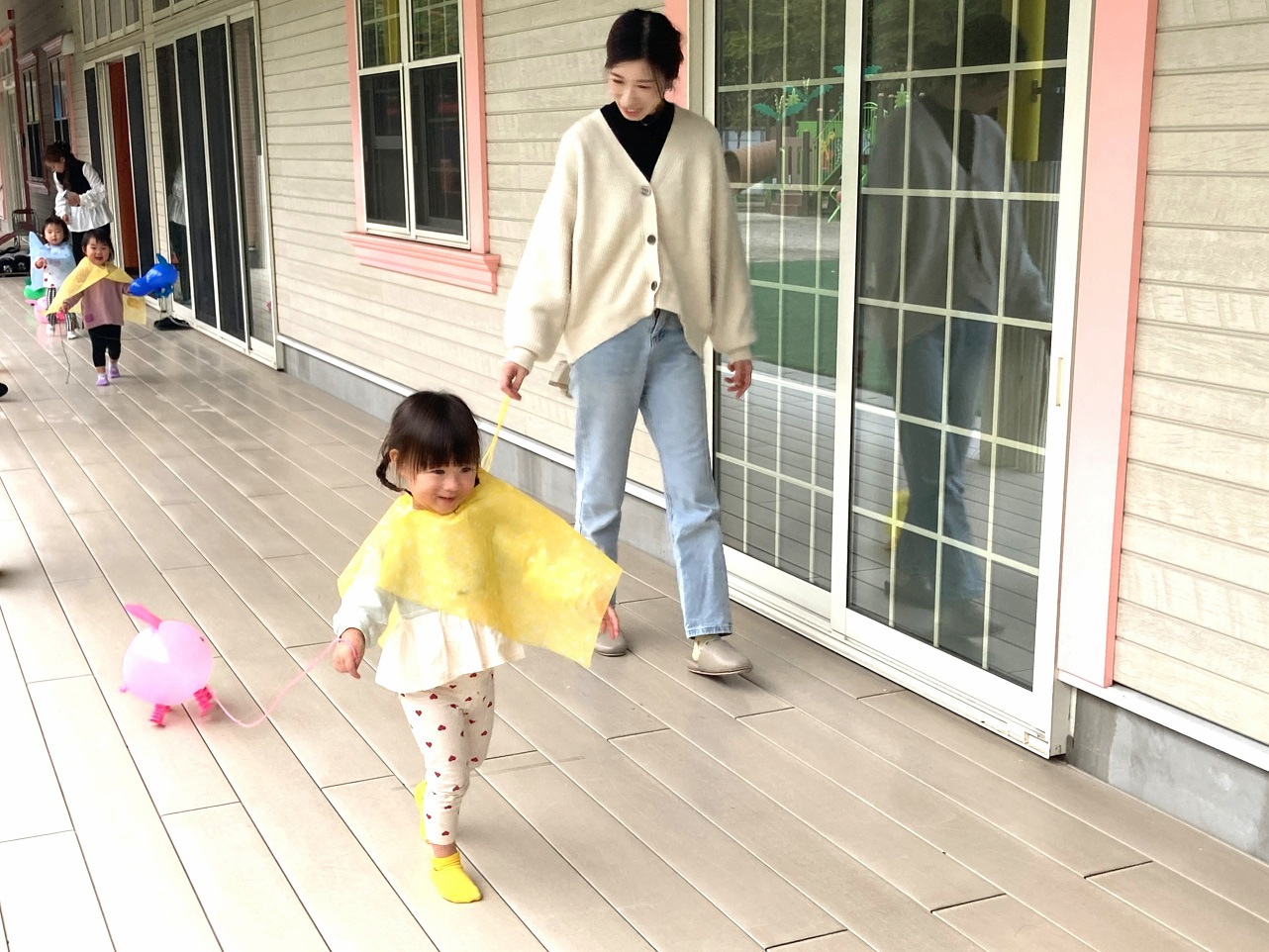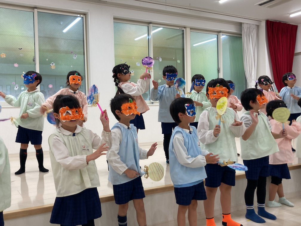 保育参観・給食試食会を行いました(2歳児・5歳児) 2025年10月31日(金) 保育参観・給食試食会を行いました。(2歳児・5歳児)2歳児は親子で風船ペットを製作し、マントをつけて散歩を楽しみました。お家の人と一緒に完成すことができ、大満足の子どもたちでした。給食試食会では、満面の笑顔で給食を食べていました。5歳児は、シイタケの植菌、モンスターバック製作を行いハロウィンパーティーを楽しみました。ハロウィンパーティーでは「トリックオアトリート!」言うと、お家の人からサプライズのお菓子のプレゼントがあり、嬉しそうにバックの中に入れていました。思い出に残る1日になりました。
